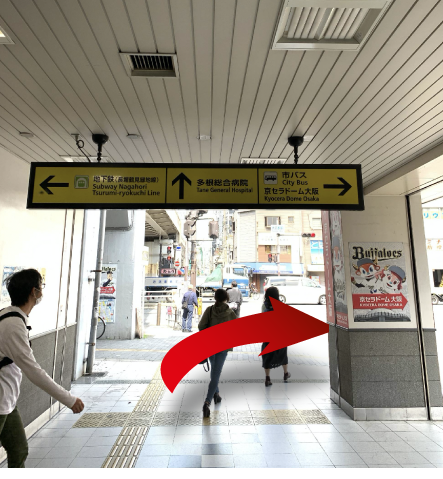 大正駅改札を出て右に曲がり、京セラドーム方面へ。