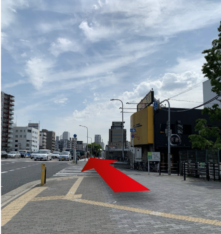 大きい交差点まで直進し、