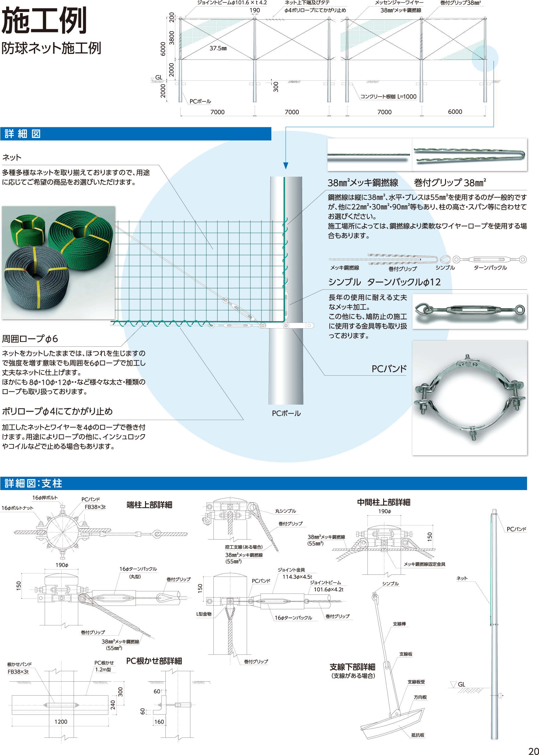 | 網止めワイヤー間隔 (A.B.C) | 2,500 | 3,000 | 2,300 | 2,600 | 3,000 | 2,500 | 2,950 | 3,125 | 3,375 |