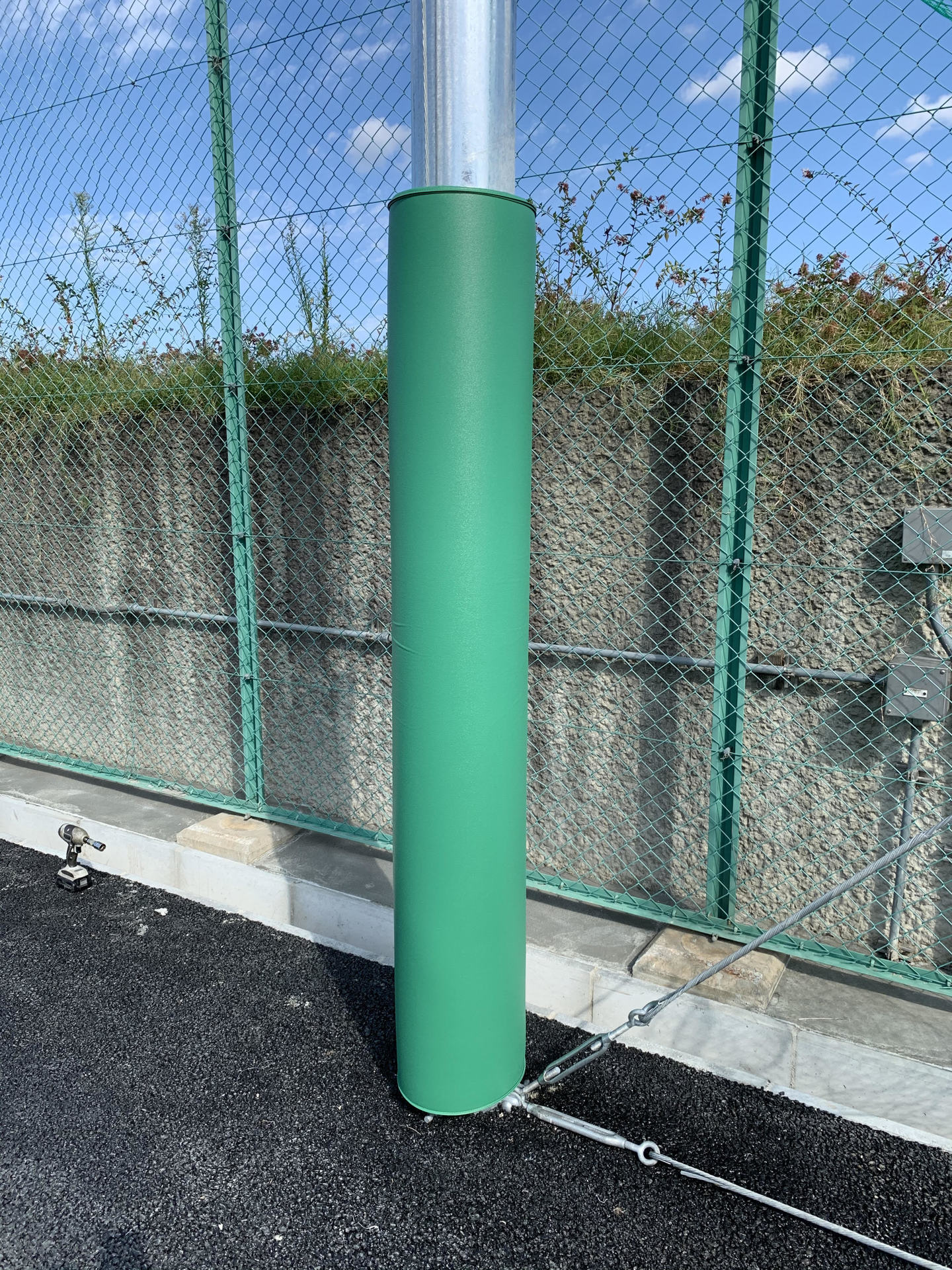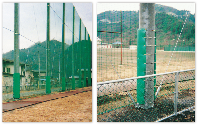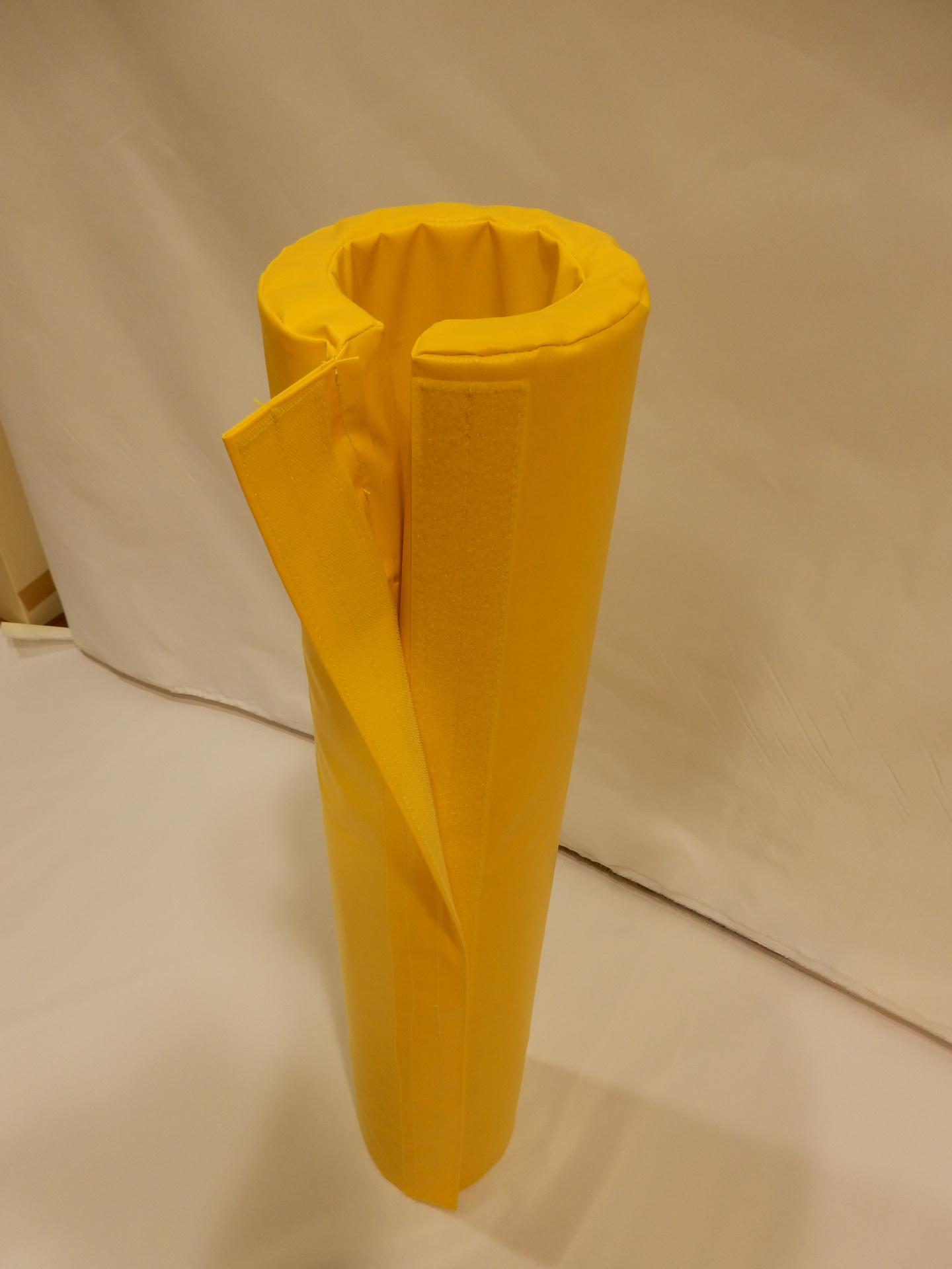 芯材に特殊ウレタンマットを使用することによりクッション性に優れ、また、外被にターポリンを使用することにより防水性も抜群です。鋼管・コンクリート柱・壁面などに簡単にロープ及びステンレスバンドで取り付けできます。寸法・ウレタン厚み、ハトメピッチなど、ご希望の特寸にお仕立て致します。