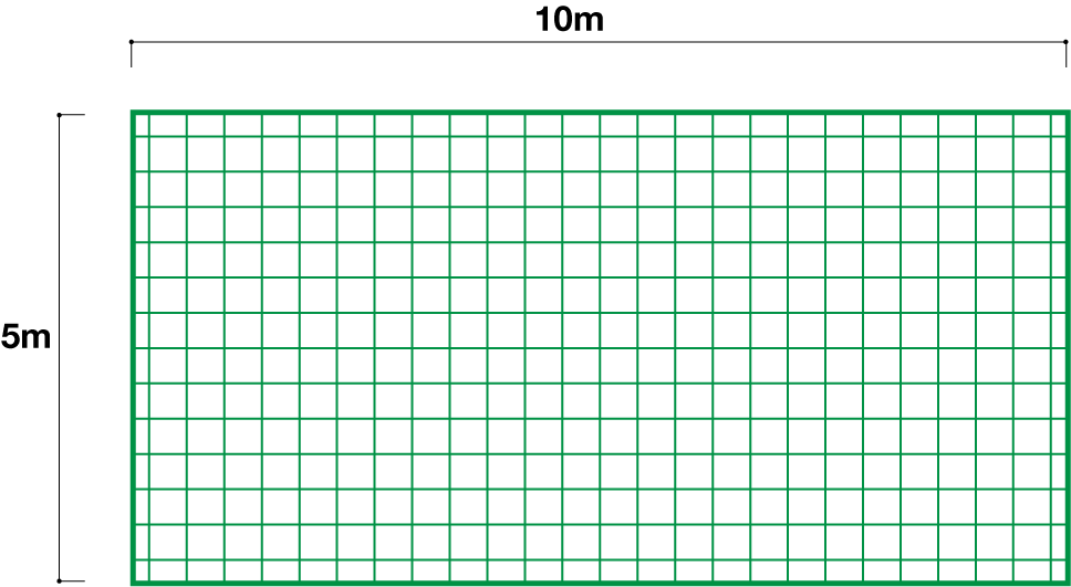 5m×10mのネット→四方周囲30mの場合、ポリエチレンロープは約90m~150mが必要です。