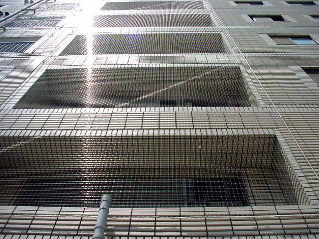 壁面に支持点を作りネットを張りますが、壁面の構造により溶接、ジャンピング、接着など工法が変わりますので、ご相談下さい。